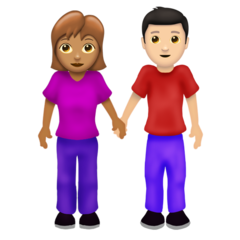 | जिसका अर्थ है | हाथ में हाथ लिए महिला–पुरुष: गेहुँआ त्वचा, गोरी त्वचा |
