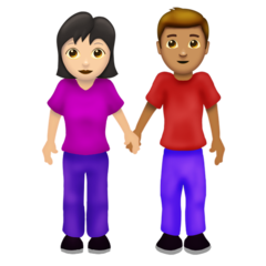 | जिसका अर्थ है | हाथ में हाथ लिए महिला–पुरुष: गोरी त्वचा, गेहुँआ त्वचा |