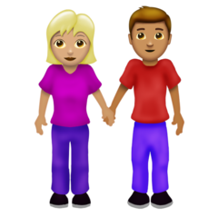| जिसका अर्थ है | हाथ में हाथ लिए महिला–पुरुष: हल्की गोरी त्वचा, गेहुँआ त्वचा |