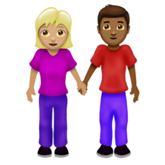 | जिसका अर्थ है | हाथ में हाथ लिए महिला–पुरुष: हल्की गोरी त्वचा, हल्की साँवली त्वचा |