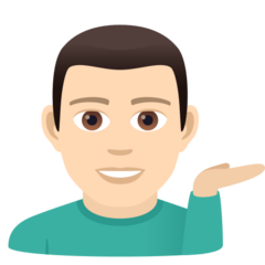 | कोडपॉइंट | U+1F481 1F3FB 200D 2642 FE0F 1F481 - 💁 ठीक है कहता हुआ व्यक्ति 1F3FB - 🏻 गोरी त्वचा |