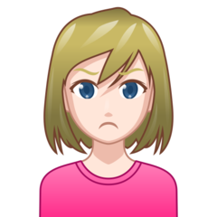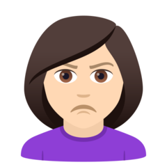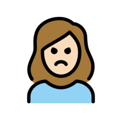 | कोडपॉइंट | U+1F64E 1F3FB 200D 2640 1F64E - 🙎 नाक–भौं चढ़ाया व्यक्ति 1F3FB - 🏻 गोरी त्वचा |