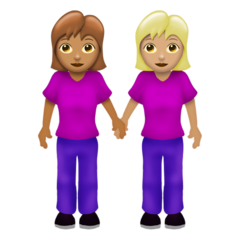 | जिसका अर्थ है | हाथ पकड़े दो महिलाएँ: गेहुँआ त्वचा, हल्की गोरी त्वचा |