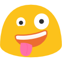 | जिसका अर्थ है | आँख मारते हुए और जीभ बाहर निकालता चेहरा |